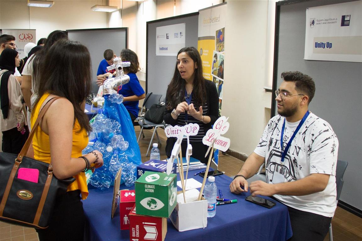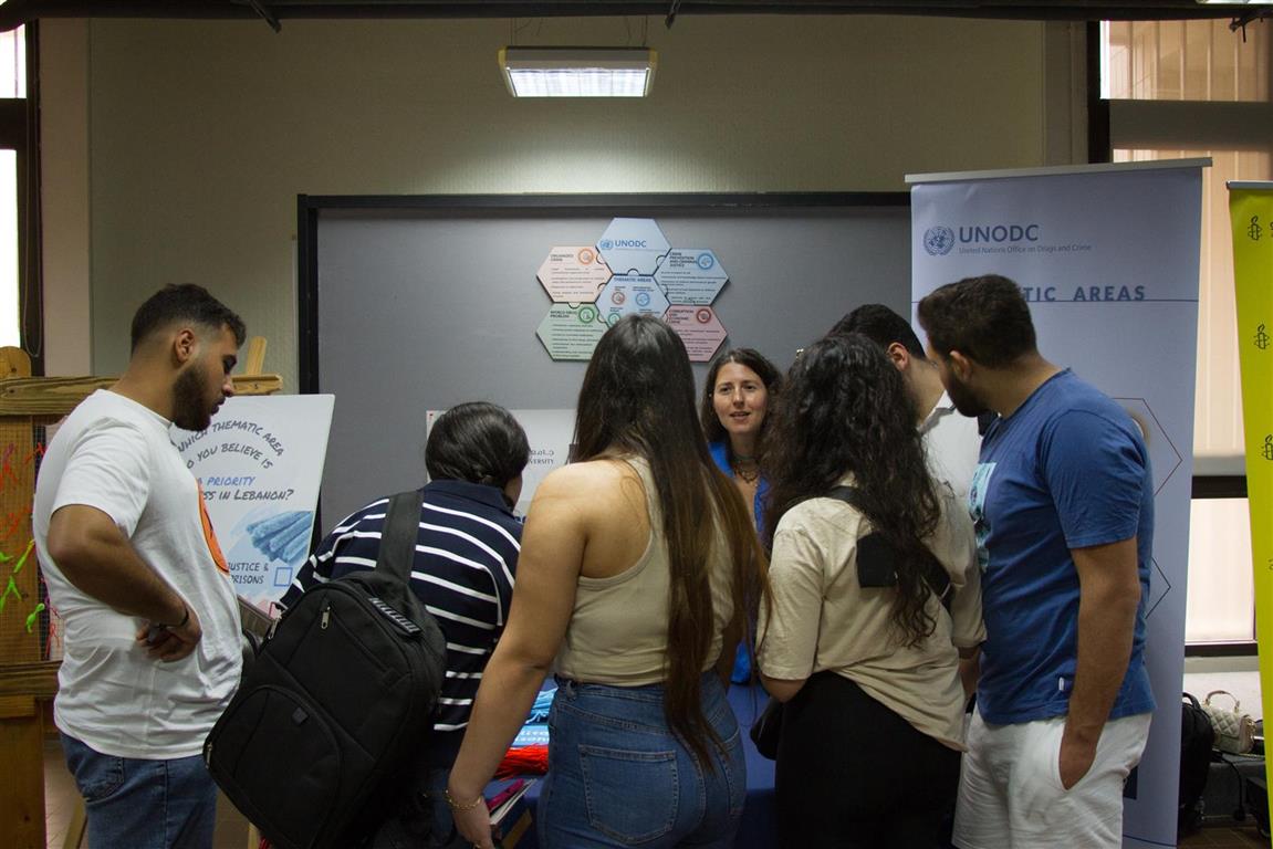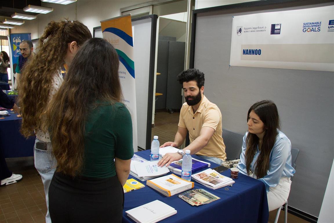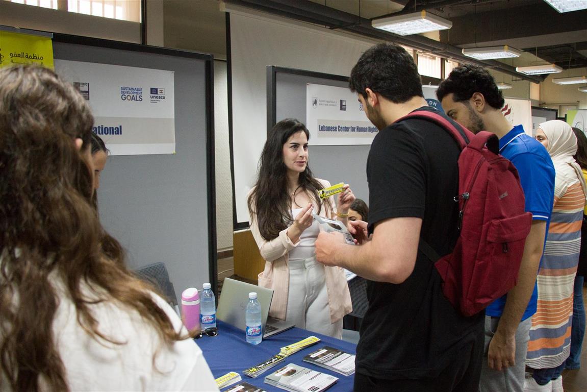 29 April 2024The 8th NGO Fair organized by the Human Rights Center in collaboration with the Lebanese National Commission for UNESCO took place on Monday 29 April 2024, from 10 am to 3 pm at Beirut campus. It served as a crucial platform for students to explore various forms of activism in Lebanon. This year’s theme “Bridging Gaps, Celebrating Human Rights, and Advancing the SDGs” aimed to highlight the importance of human rights and sustainable development goals, with the participation of approximately 20 NGOs along with the United Nations Office on Drugs and Crime – Lebanon (UNODC), as well as the BAU UNESCO Club, DSC Club and Red Cross Club.