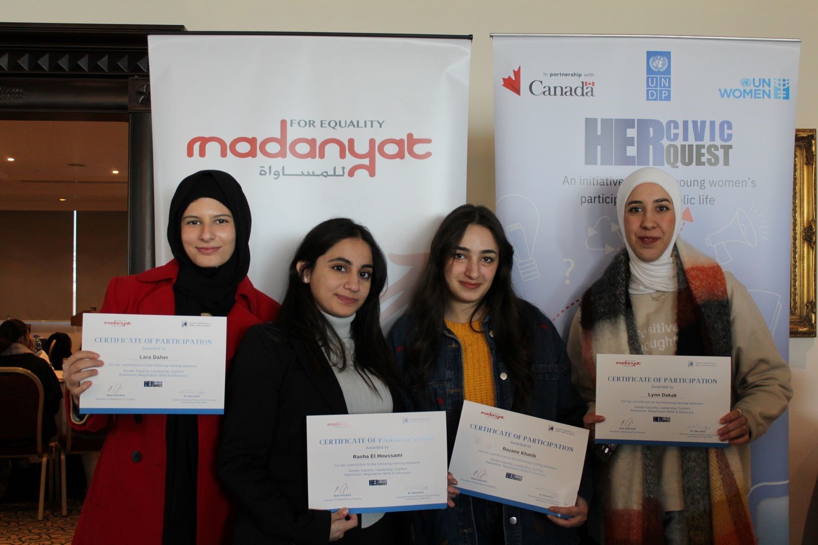 11 January 2025On Saturday 4 & 11 January, Phase 2 of “Her Civic Quest” initiative took place at Habtoor Grand Hotel bringing together ambitious and dedicated female students from Beirut Arab University and Saint Joseph University of Beirut. Training sessions delved into various topics, including political messaging, needs assessment, lobbying techniques and debate skills.
