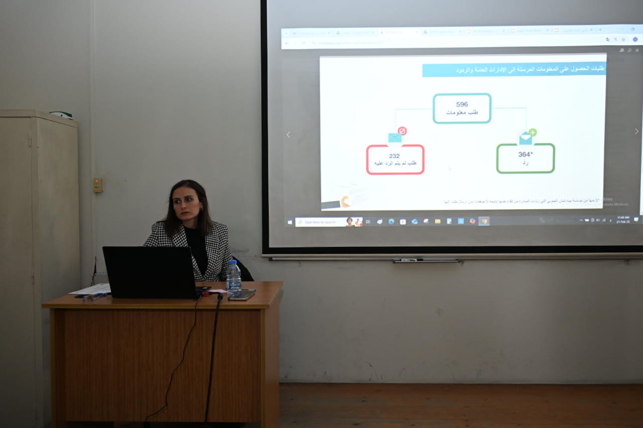 Students gained valuable knowledge about Gherbal Initiative’s mission and its critical role in advancing transparency in Lebanon. The session provided an in-depth look at the Access to Information Law, explaining its key provisions, significance, and the rights it grants to citizens. Participants also analyzed findings from Gherbal’s reports, including Transparency in Lebanese Administrations, which evaluates public sector responses to information requests.