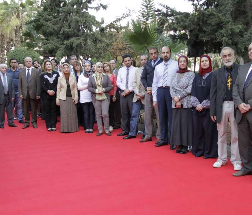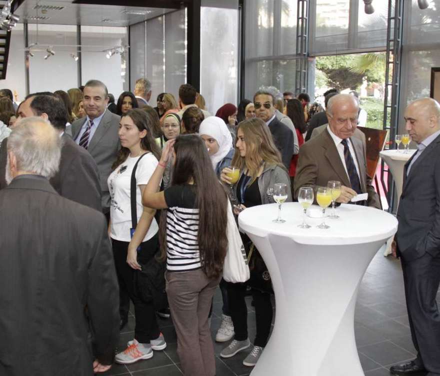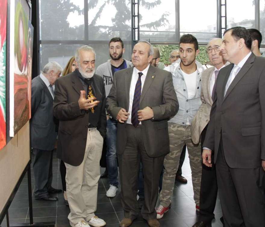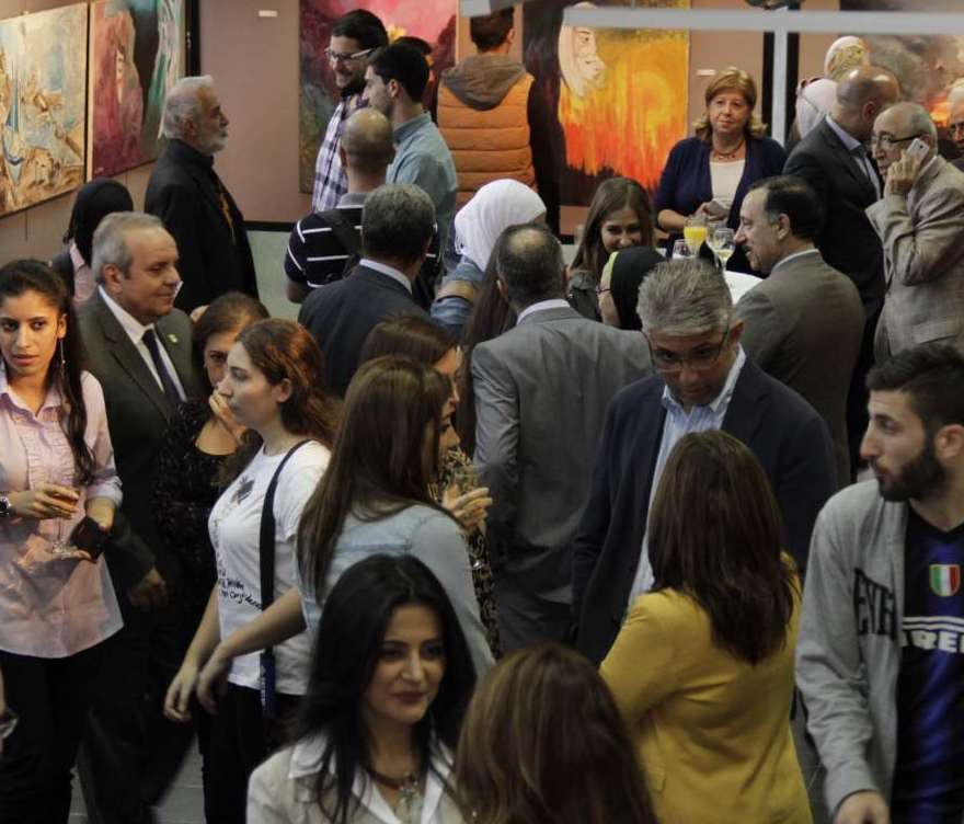 After the Lebanese and BAU anthems were played, Ms. Rima Chehab opened the event with a welcoming note. She highlighted the harshness of translating war into art. Prof. Dr. Amr Galal El Adawi praised the works of Sleiman, noting the steady imprint left by the artist in painting, the theatre and TV. In his turn, Prof. Dr. Essam Osman, Vice-President for Medical Sciences, pointed out the necessity of students attending such exhibitions to broaden their artistic and creative horizons.