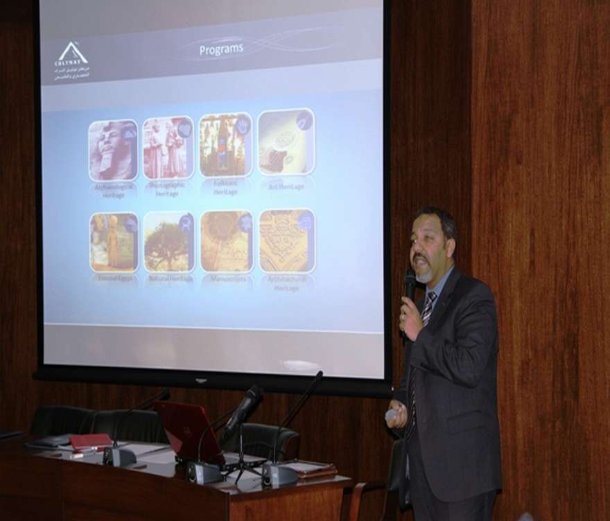 Eng. Mohamed Farouk presented the Culturama Technique which he had invented. The technique documents the Egyptian Heritage by chronologically presenting panoramic images of Egyptian manuscripts and arts, thus explaining the impact these have on education and acculturation.