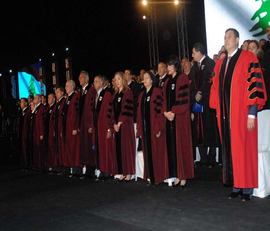 The ceremony ended with the distribution of certificates on the graduates of whom 32 got Jamal Abdul Nasser Award for Academic Excellence. He granted Mr. Mohamad Chocair, the Keynote Speaker of the Commencement Ceremony a shield of Appreciation for his contributions on the Lebanese Local Society Level and his participation in Beirut Arab University Great Day.