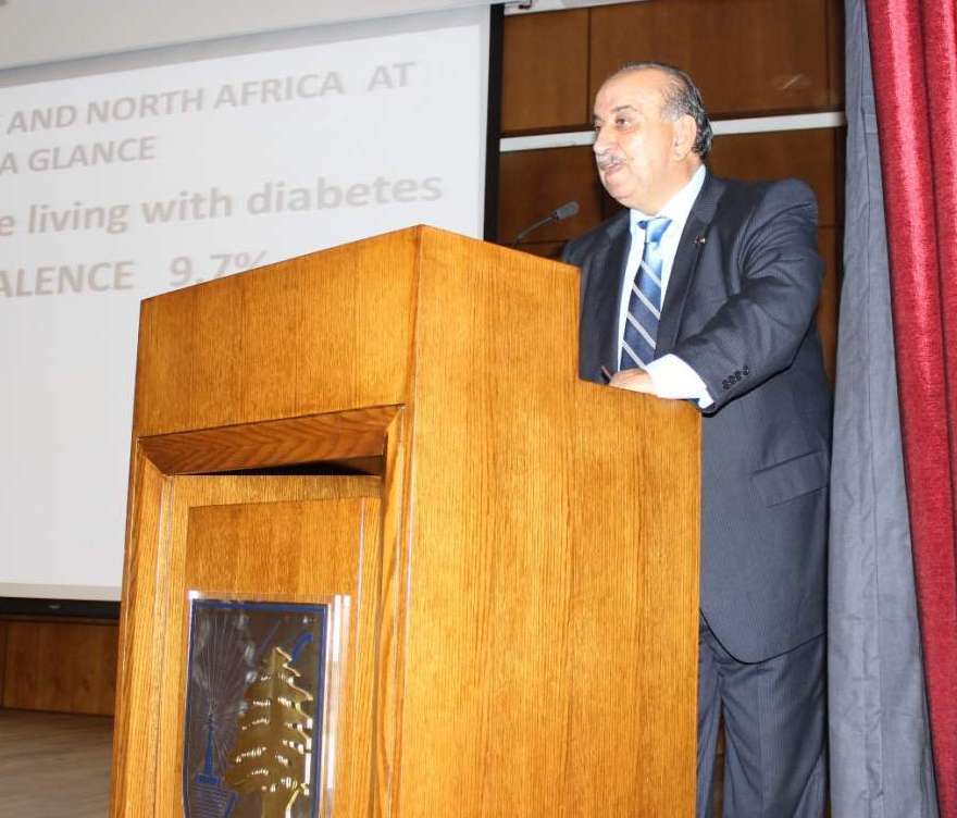 Dr. Mohamed Sendid, President of the Lebanese Diabetes Association, highlighted in his speech the message sent by the President of the Federation, Sir Michael Hurst. He focused on the efforts that need to be exerted in awareness raising and in care, to bring Diabetes under control. He further praised the commitment of International Societies in providing support and solidarity for Diabetics.