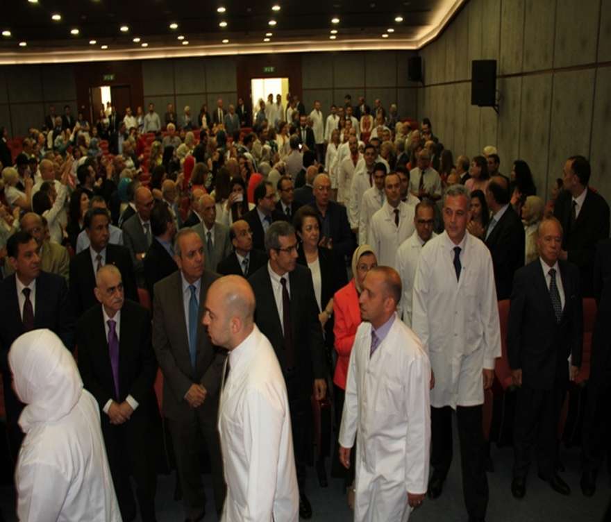 The Faculty of Medicine at Beirut Arab University celebrated the graduation of the “Tenth Class” of the Specialized Medicine amounting to 66 students who have completed the necessary professional training courses in various medical specialties. The ceremony was held at Beirut campus on the 5th of June, 2014 , and was attended by the Director of Preventive Medicine at the Ministry of Health, Dr. Asaad Khoury, representing HE Minister of Health Wael Abou Faour; Dr. Abdel Amir Fadlallah, representing the Head of the Lebanese Order of Physicians Prof. Antoine Boustani; Colonel Omar Mohamad Al Khalafawi, The Chief of the Military Communication Office representing the Egyptian Ambassador to Lebanon, Prof. Dr. Amr Galal El Adawi, President of BAU, Prof. Dr. Essam Osman, BAU Vice-President for Medical Sciences, Mr. Issam Houri, BAU Secretary General, Mr. Toufic Houri, Head of the “Waqf el Bir wal Ihsan” Society, Prof. Naglaa Mashaal, Dean of the Faculty of Medicine, in addition to the Deans of Faculties, Staff-Members, University Administrators, the parents of the graduates, representatives of the following Hospitals: Hammoud, Makassed, Sahel, Dar Al Ajaza Al Islamia , Rafic Hariri University, Zahraa University, and Saida Governmental Hospital.