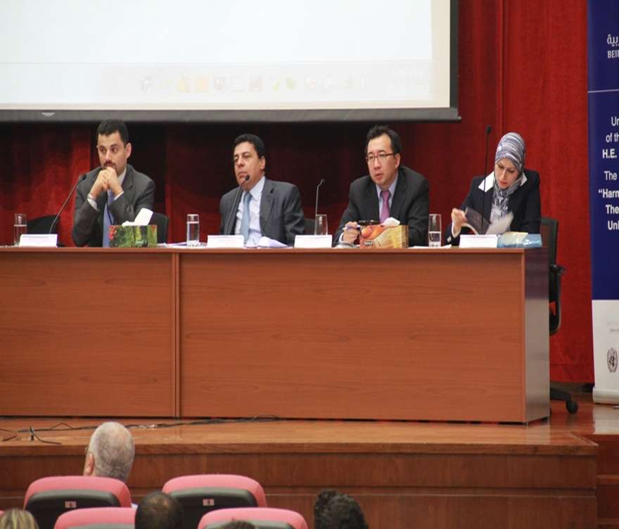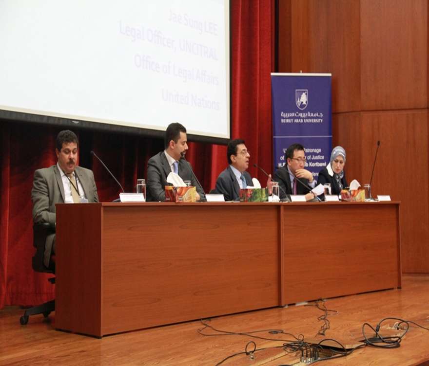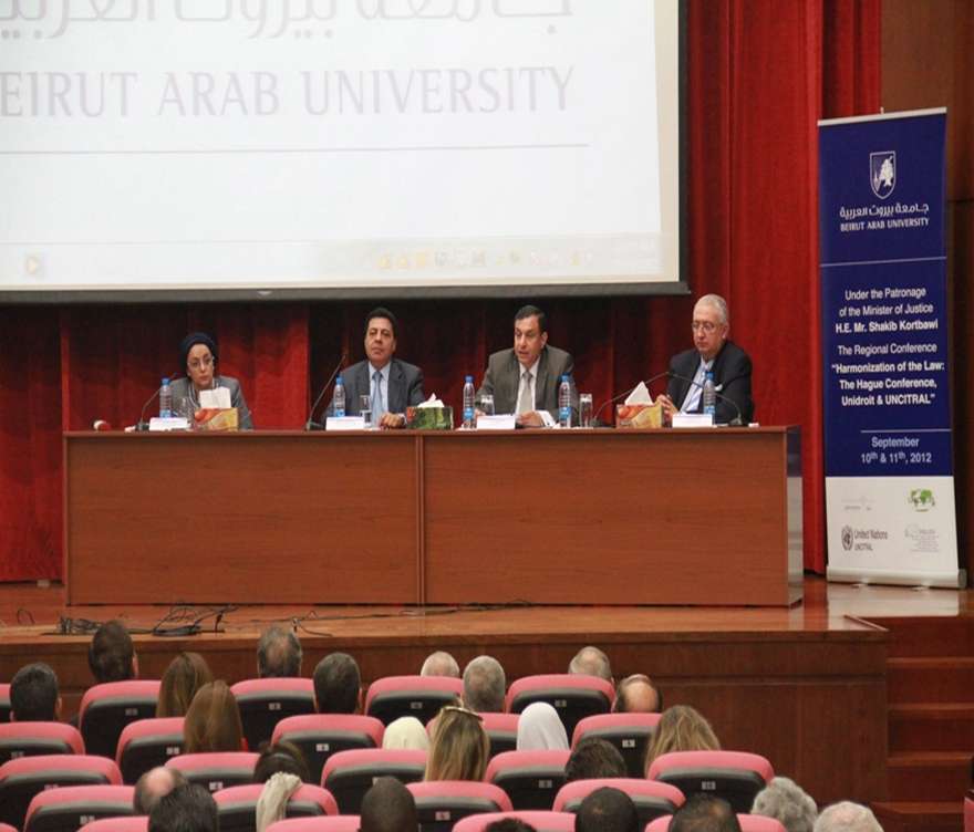 10 September 2012Beirut Arab University hosted the Regional Conference entitled “Harmonization of the Law: The Hague Conference, Unidroit and UNCITRAL” in its Campus in Beirut on the 10th of September 2012 under the patronage of Minister of Justice Mr. Shakeeb Kortbawi represented by Judge Prof. Sami Mansour, President of the Institute of Judicial Studies in Lebanon. The conference was attended also by Prof. Amr Galal El Adawi, President of Beirut Arab University, Mr. Issam Houri, Secretary General, Prof. Hanafy Holail, Vice President for Academic Affairs, Prof. Khaled Baghdady, Vice President for Tripoli Branch Affairs, , Prof. Mohammad Mattar, Executive Director of the Protection Project at Johns Hopkins University, faculty deans and faculty members as well as interested audience, in addition to participants from The United States of America, Europe and Arab Countries.