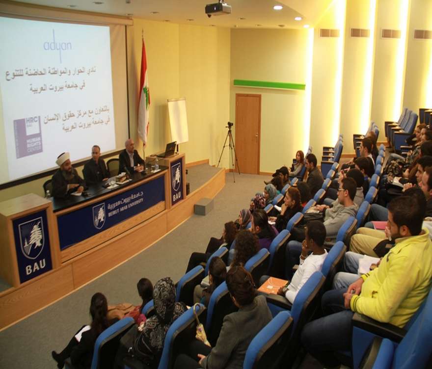 26 November 2012Adyan Foundation, in cooperation with the Human Rights Center at BAU, organized a seminar entitled "Can a Christian-Islamic Dialogue Contribute to Building Peace and Stability?", hosting the President of the Official Sunni Court of Said, Sheikh Mohammed Abu Zeid, and the Chairman of Adyan Foundation, Father Dr. Fadi Daou, to launch a club for dialogue and citizenship fostering diversity.