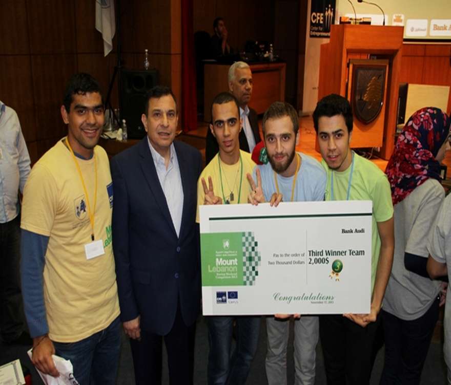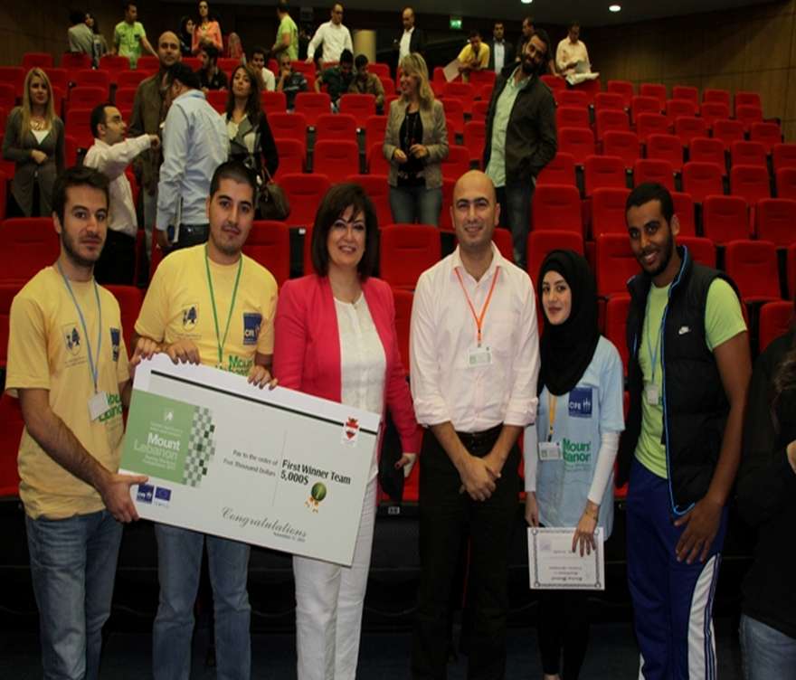 Prof. Dr. Amr Galal El Adawi, President of BAU, remembered late Prime Minister Rafic Hariri, who was the first Lebanese to consider education and its importance for the youth. He had thus sent over 35 thousand students to study abroad, who consequently attained distinguished higher degrees. Prof. El Adawi added, “The creativity and ideas of the youth are plentiful, but they need someone willing to study and adopt them. The youth need someone to help them realize these ideas. Thus this competition enables the youth to be creative and present ideas that will see the light. Since it is team-work that is successful, the competition is based on the idea of group-work”. The President further pointed out that the CFE was launched two years ago with the aim to develop the abilities of the youth. The philosophy behind it was that no individual should await a job, but rather that we should contribute through our ideas to the creation of jobs.