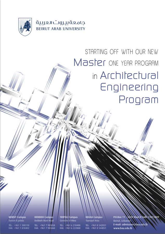 For more info. Contact the Faculty of Architectural Engineering at 00961 1 300110 ext. 3215