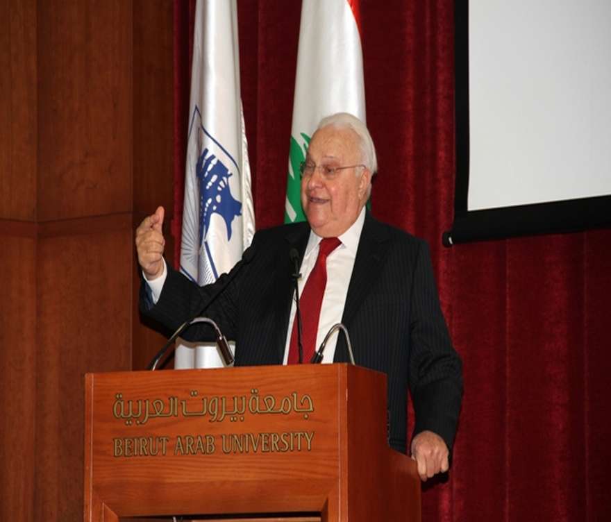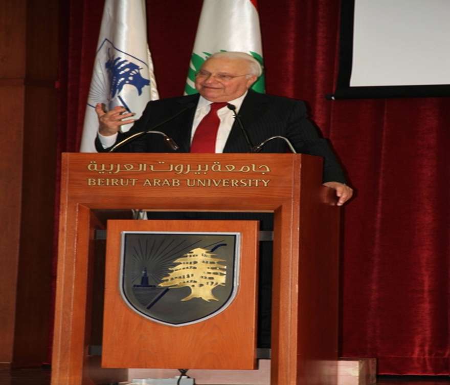 16 January 2014Beirut Arab University hosted Mr. Mohamad Barakat, Secretary General of Arab Charity Society and Honorary President of the National Council of Social Services in Lebanon in a lecture whereby he narrated how he built his Social Life as a career. He opened his lecture by saying “Lebanon today has become a polarized and divided country, where there seem to be societies for each sect and each political party. Thus these societies lack autonomy as they are controlled by political or partisan orders. Societies that work in dissociation from politics and truly serve the society, remain successful and supported by the community”. The Lecture was part of the Cultural Season at BAU and was entitled “Civil Society Organizations: Lessons Learnt from their Merits and Demerits”.