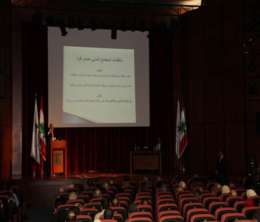 The lecture was attended by Beirut Arab University President, Prof. Dr. Amr Galal El Adawi, Ex-Minister Dr. Adel Cortass, Head of the Journalists’ Syndicate, Mr. Mohamad Baalbaki, the Head of Dar Al Aitam El Islamiah, Mr. Farouk Jabr, the Head of El Makassed Islamic Charity, Mr. Amin Daouk, Board Members of the Bir and Ihsan Endowment, BAU Vice-presidents, deans of faculties, Secretary General Mr. Issam Houri, Director of Public Relations Administration Mrs. Zina Ariss, BAU Directors and a crowd of civil society representatives and Interested Audience.