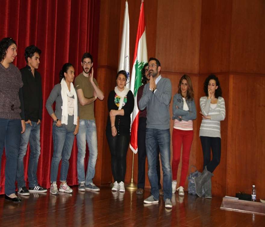 18 February 2014The Students’ Activities Department at Beirut Arab University, Beirut Campus, organized a workshop for the various Students’ Club Members with George Khabbaz, Maya Nehmeh and Marcellino Gebraiel. Khabbaz gave students advice and guidelines on the principles of TV, Theatre and Cinema Acting. Nehmeh provided the students with the principles of modern dancing, while Zoomba Trainer, Gebariel interacted with the students through a number of dances.