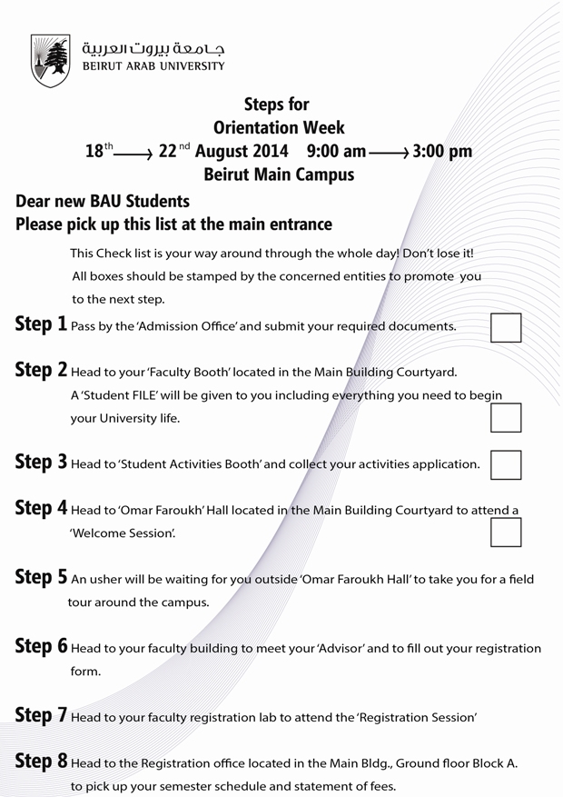 Steps for Orientation Week - Beirut
