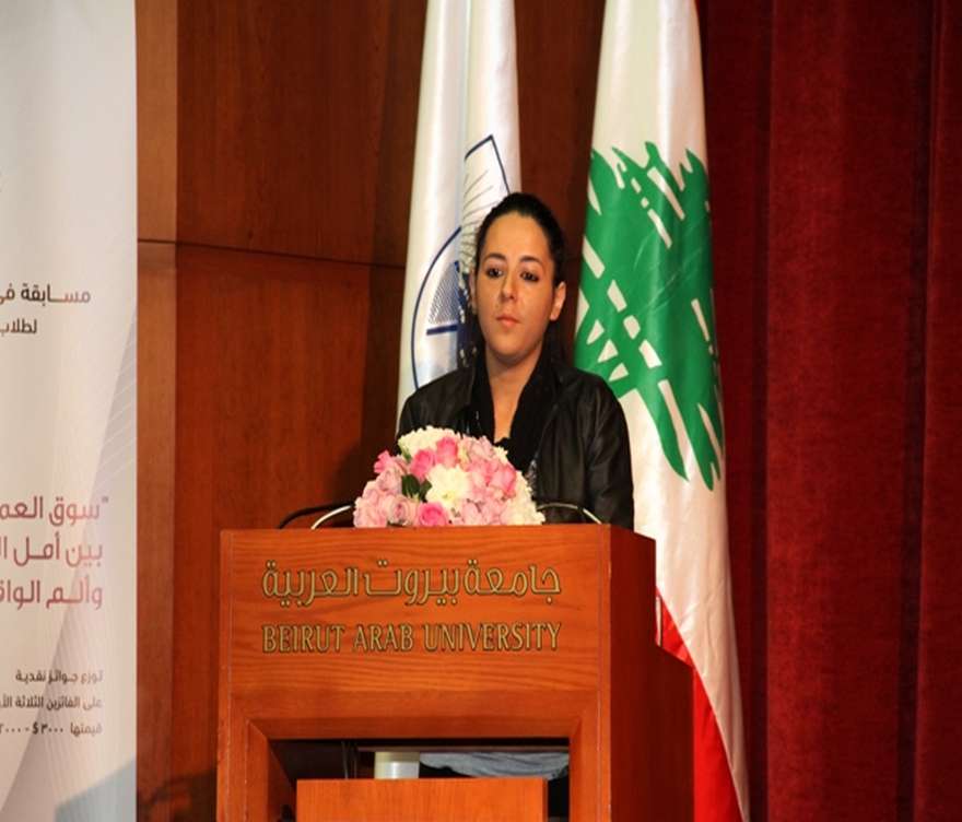 After the Lebanese National Anthem and the BAU Anthem were played, Mrs. Abeer Ghazal gave an opening speech in which she pointed out that unemployment is the foremost source of anxiety for Lebanese youth as soon as they set foot into a university. She called upon the contestants to express these concerns eloquently, highlighting that the high rates of unemployment are an embodiment of the pain that supersedes the hope that may be heard between the lines.