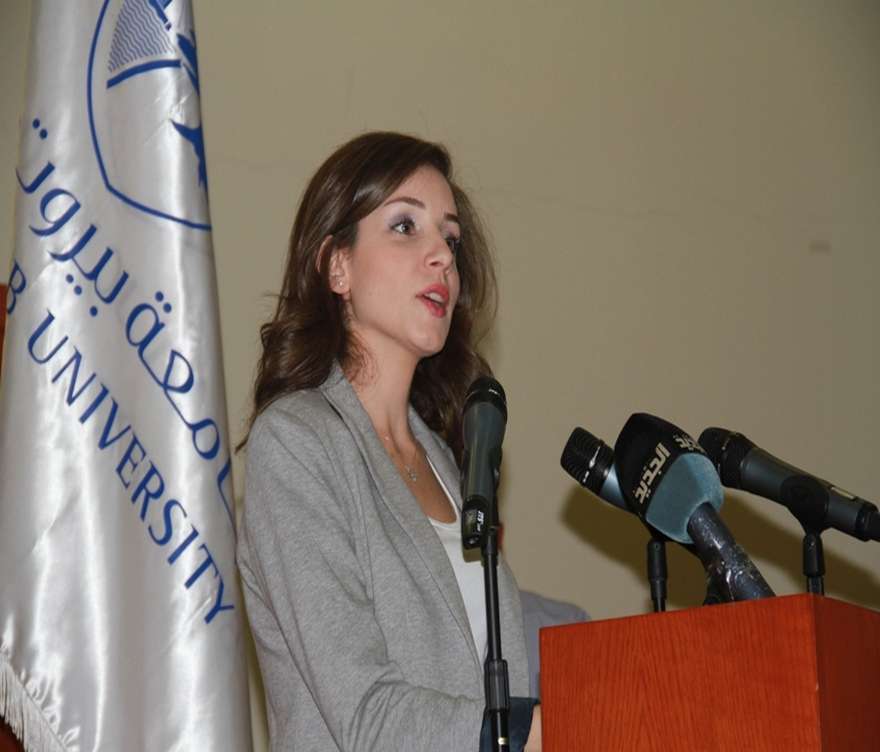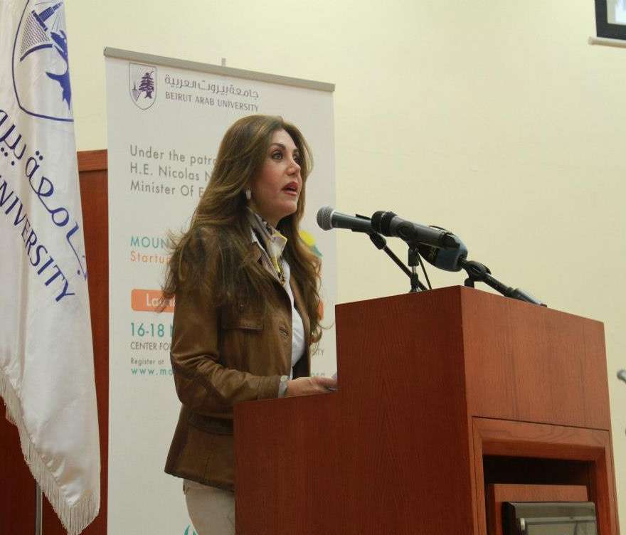 After the Lebanese National Anthem and the University Anthem were played, Dr. Laila Abboud welcomed the guests, expressing gratitude to Minister Nahas for sponsoring the launching of the competition. She pointed out the role and objectives of the Center of Entrepreneurship, as well as the importance of the competition at the Lebanese economic level and of introducing student projects to the job-market.