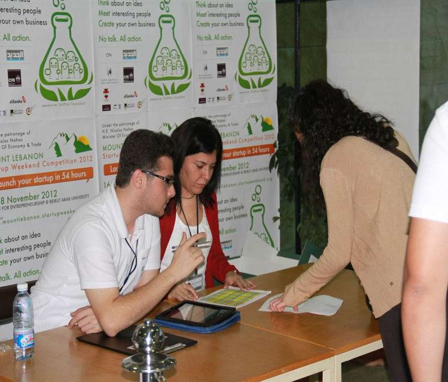 16 November 2012The Center for Entrepreneurship at Beirut Arab University organized the Mount Lebanon Startup Weekend in an attempt to help students present their ideas and projects to specialized committees. The best projects were to be chosen, adopted and provided with the adequate environment for implementation. The event took place at the BAU Campus in Debbieh, where 26 teams consisting of students from a number of schools and universities participated, to compete and present their ideas and projects. They benefited from the support of their colleagues who elected the best 20 ideas, and from the comments of the work-team supervising the competition, headed by the Director of the Center for Entrepreneurship at BAU, Dr. Laila Abboud.