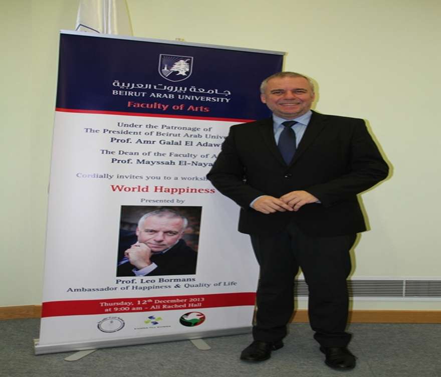 The conference concluded on Thursday with a lecture delivered by an expert in stimulating governments, politicians, the media, organizations, students and citizens to think and interact positively, namely Dr. Leo Bormans, Ambassador of Happiness. The title of the lecture is “World Happiness”. Dr. Bormans who lectured about happiness on the 12th December, 2013 spoke of Lebanon’s rank on the ladder of happiness according to UN statistics. Lebanon’s rank is 97 of 160 countries, and thus he called upon the Lebanese to make progress in terms of happiness, since they enjoy the characteristics and merits that empower them to attain top rankings.