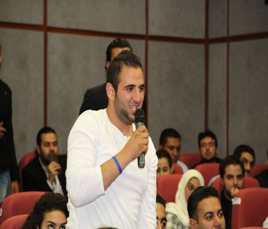 This was followed by a brief question-and-answer session, in which he explicitly expressed his love for his own honesty and his hatred of his own moodiness. He further expressed his love to listening to Fairouz, his full confidence in God, and his boycotting of facebook. He stated that he considered the entire Arab World his second homeland, and concluded by addressing a sincere message to the BAU students and the Lebanese youth in which he called upon them never to despair.