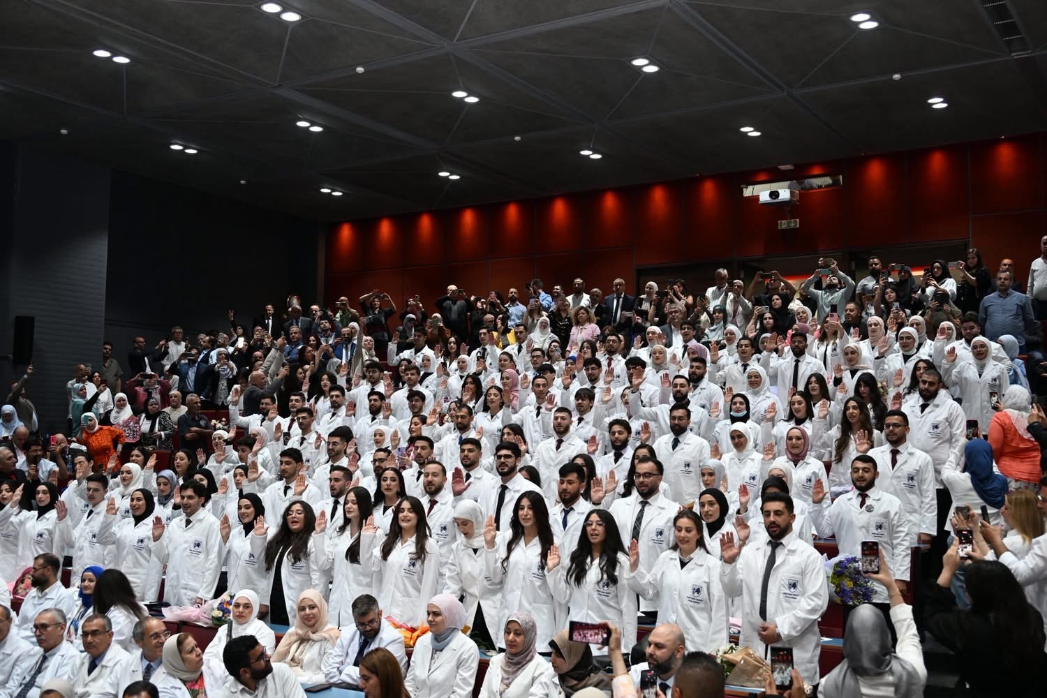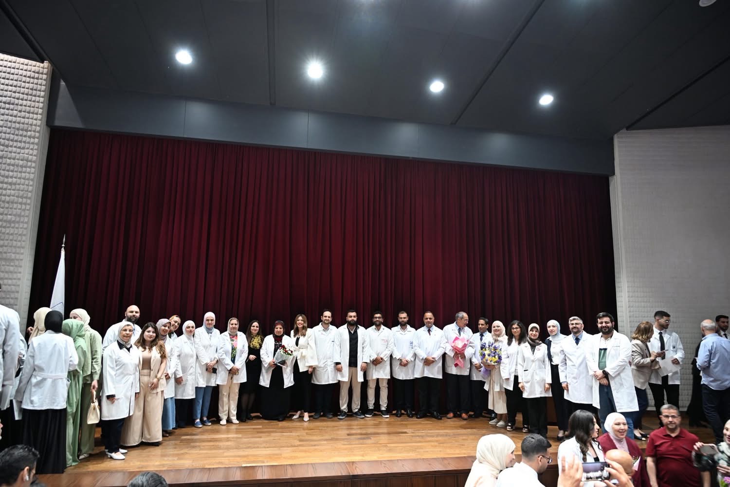 Dr. Michal Shahhoud, the host of the ceremony, said: “This is a moment when our students take their first steps toward serving humanity, wearing the symbol of purity and dedication; the white coat, marking their transition to the clinical phase of their medical journey. The past three years have been filled with challenges, sleepless nights, study, and commitment.”