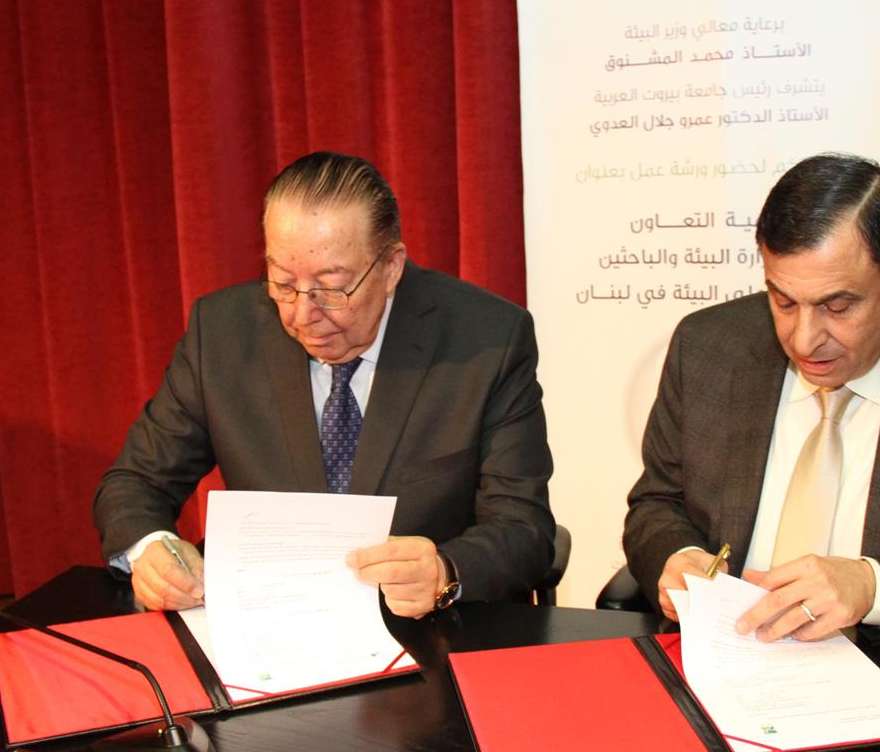 A Memorandum of Understanding between Beirut Arab University represented by its president Prof. Amr Galal El Adawi and the Ministry of Environment represented by its minister Mr. Mohamad Mashnouk was signed on March 10, 2015 at Jamal Abdel Nasser Hall – Beirut Campus for a three-year, subject to renewal, which aims at qualifying specialists and experts in various environmental specializations and engage them in both public and private ecological efforts.