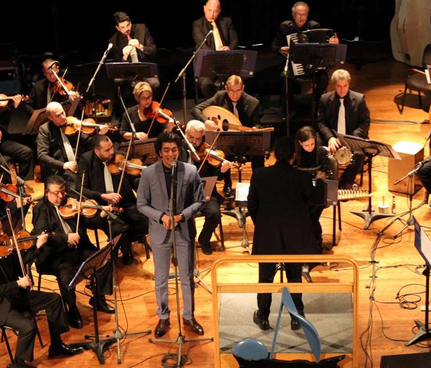 The lyrics of Mahmoud Darwiche, Ahmed Shawky, Ahmed Fouad Negm and the Brothers Rahbani, coupled with the melodies set by Mohamed Abdel Wahab, Marcelle Khalife, and Ziad Rahbani, in addition to beautiful musical pieces composed by Dr. Walid Gholmieh, Khalil Rahmeh and Andre Hajj that were played by the skilled and professional fingers of the twenty-five Orchestra musicians. The tunes they played mingled with the sentiments of Mohamed Mohsen and the large crowd who filled the Jamal Abdel Nasser Hall.