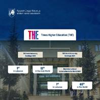 For the second year in a row, Beirut Arab University achieved the top spot in the country and attained the prestigious position of being ranked 1st in Lebanon, according to the recently published Times Higher Education Arab University Rankings for the year 2023. Additionally, BAU has received the highest scores in Lebanon in two performance indicators, namely "Teaching" and "International Outlook."