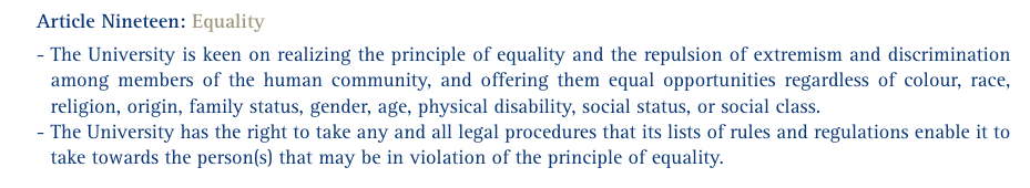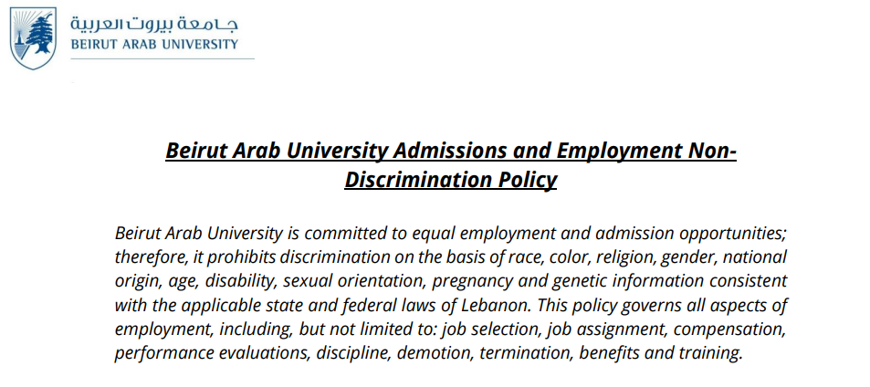 Beirut Arab University Admissions and Employment Non-Discrimination Policy - Equal Access